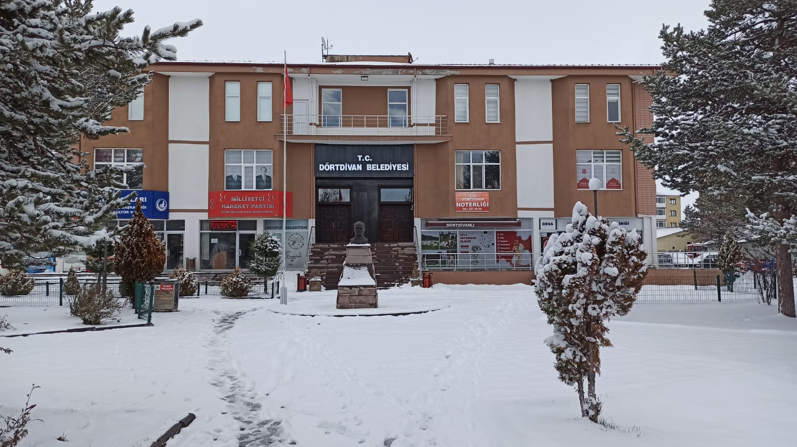 ​Hava sıcaklığının sıfırın altına düşmesiyle birlikte yağmur yerini yoğun kar yağışına bıraktı. İlçe merkezinde kar kalınlığı yer yer 10 santimetreye ulaşırken, Dörtdivan Belediyesi önündeki Atatürk büstü ve çevresindeki çam ağaçları seyirlik görüntüler oluşturdu.