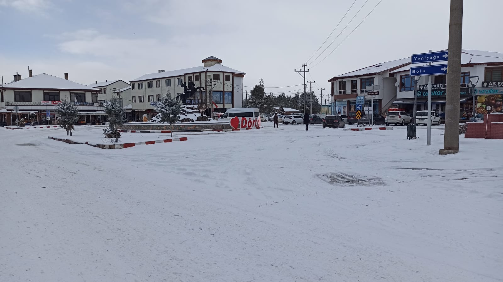 ​İlçenin sembollerinden olan ve meydanda bulunan Köroğlu Heykeli, kar yağışıyla birlikte büyüleyici bir manzaraya büründü. Meydandaki "I Love Dörtdivan" yazısı ve çevredeki parklar, fotoğraf tutkunları için kartpostallık kareler sundu. Bolu ve Yeniçağa istikametine giden yollarda kar temizleme çalışmaları sürerken, tabelaların üzerini kaplayan kar kış mevsiminin tam anlamıyla geldiğini müjdeledi.