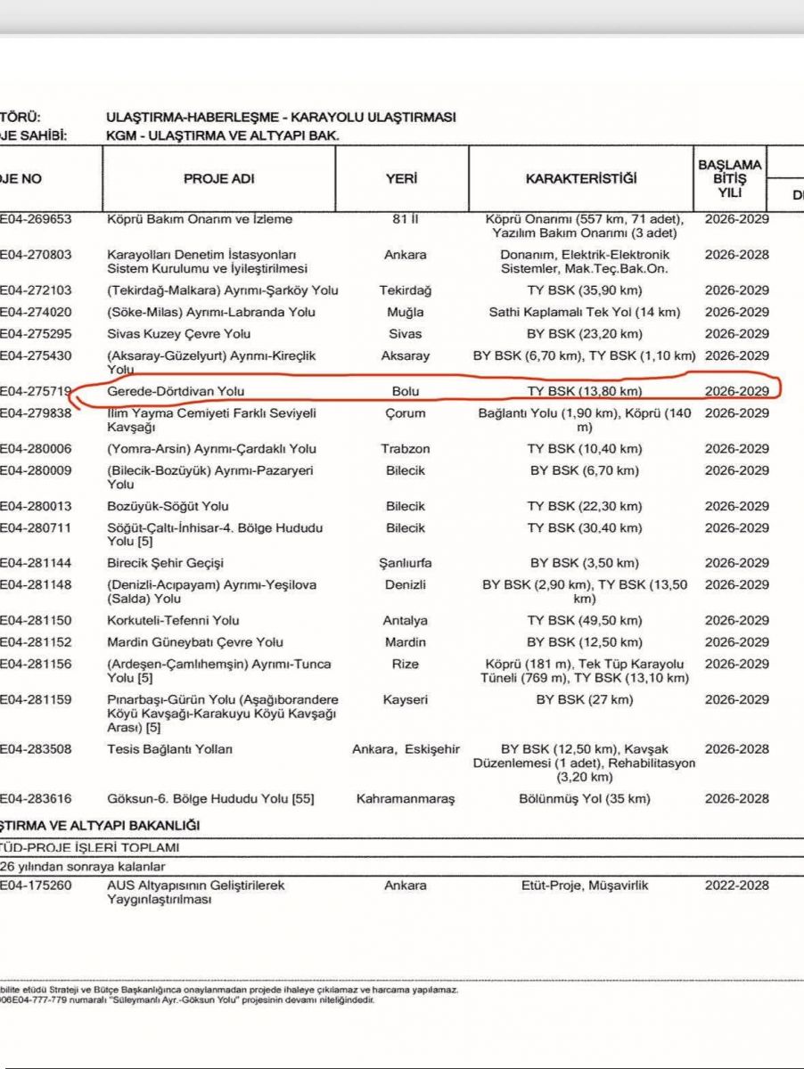Dörtdivan’da Yılların Sorunu Çözülüyor: Gerede Yolu Projesi 2026 Yatırım Programında!