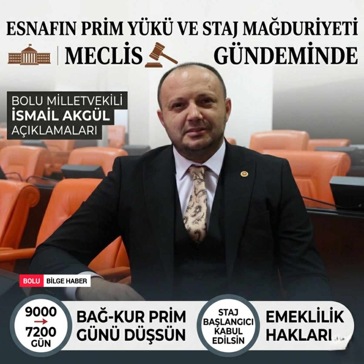 ANKARA – Bolu Milletvekili İsmail Akgül, Meclis Genel Kurulu’nda yaptığı açıklamalarla toplumun geniş kesimlerini ilgilendiren sosyal güvenlik sorunlarına dikkat çekti. Akgül, özellikle esnafın üzerindeki prim yükünün hafifletilmesi ve staj döneminin sigorta başlangıcı sayılması gerektiğini vurguladı.