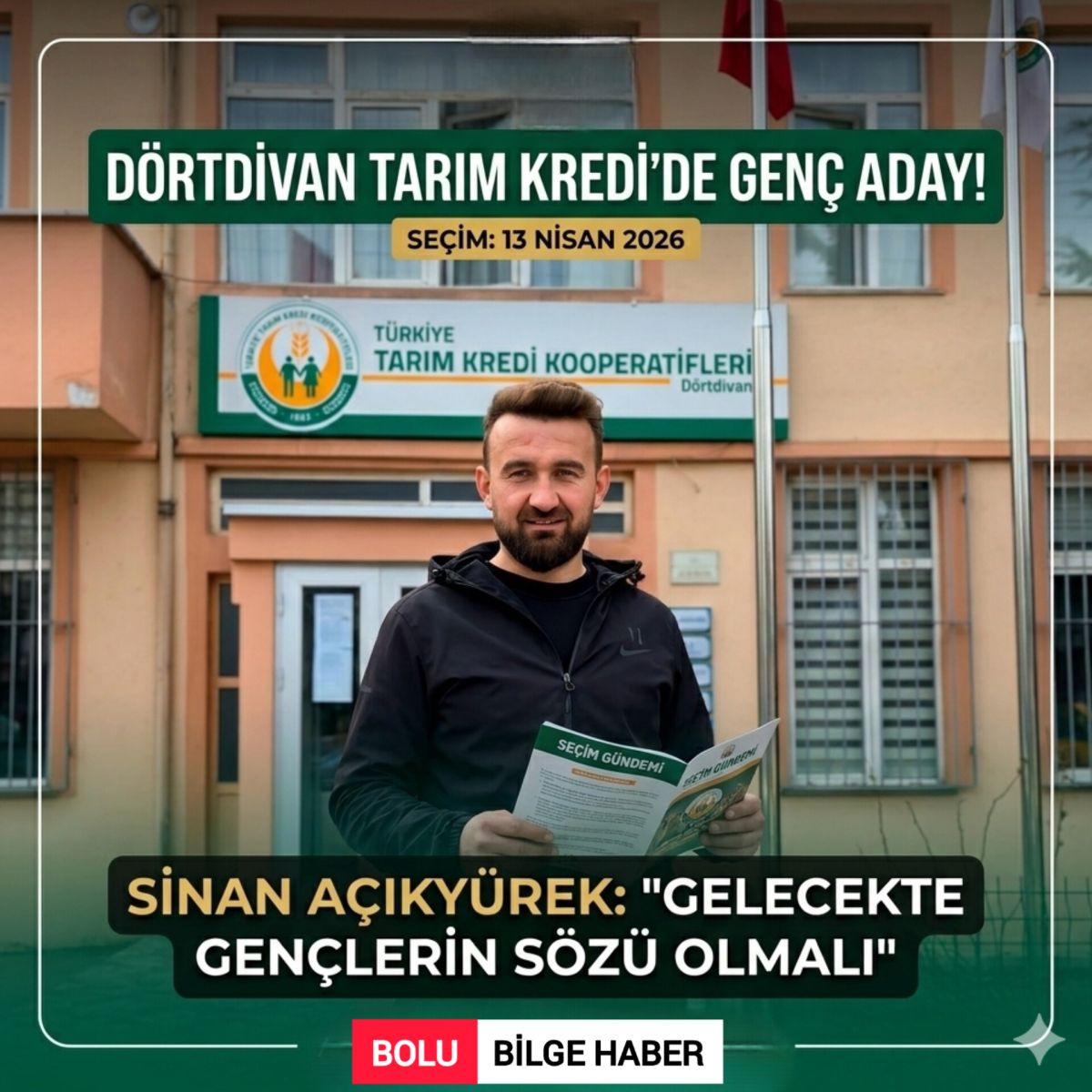 Dörtdivan 1047 Nolu Tarım Kredi Kooperatifi, kritik bir seçime hazırlanıyor. Kooperatif üyelerinin sandık başına gideceği seçimlerde, genç ve dinamik bir isim olan Sinan Açıkyürek aday olduğunu kamuoyuna duyurdu.