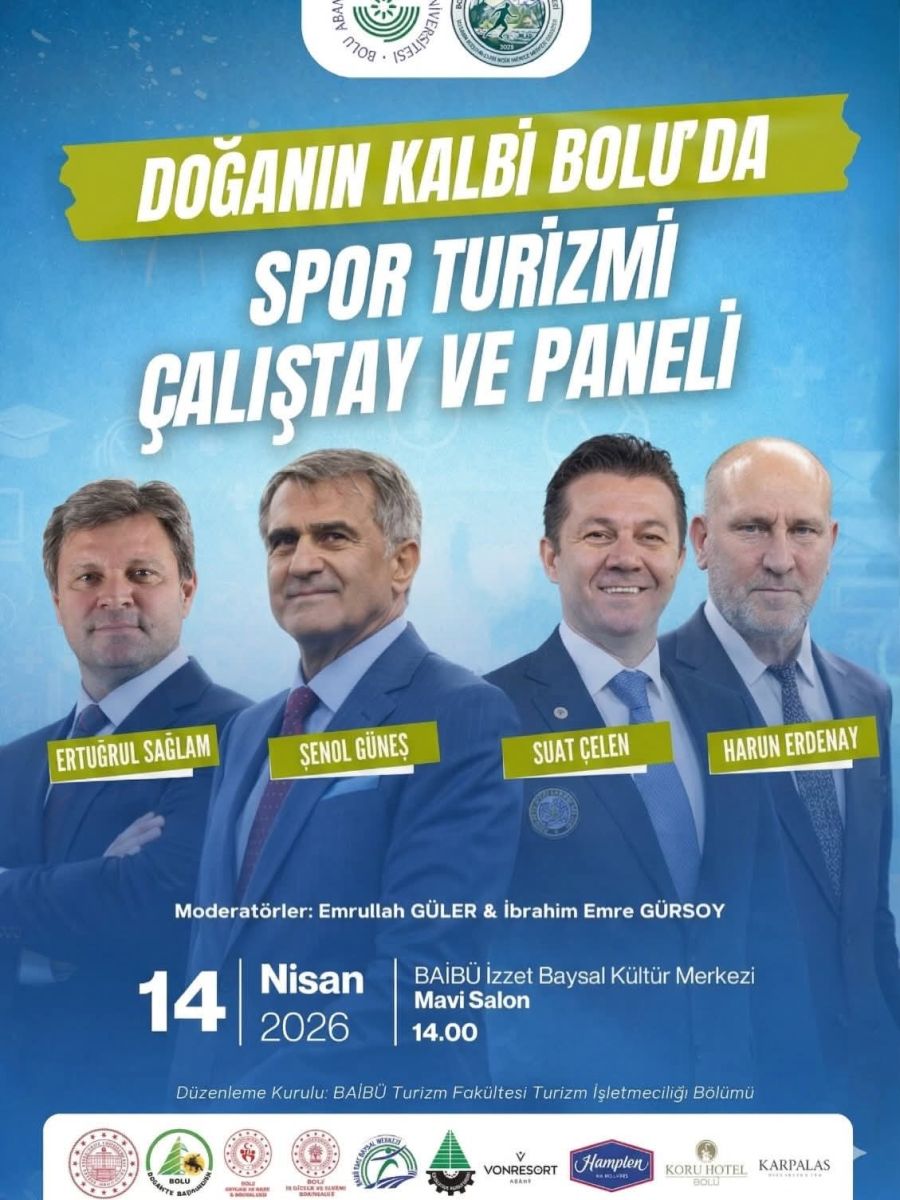 14 Nisan 2026 Salı günü saat 14.00’te BAİBÜ İzzet Baysal Kültür Merkezi Mavi Salon’da başlayacak olan panelin konuşmacı kadrosu, spor kamuoyunda şimdiden büyük yankı uyandırdı. Türk futbolunun beyefendisi Ertuğrul Sağlam ve tecrübeli teknik adam Şenol Güneş, futbolun turizmle olan stratejik bağını anlatacak. Öte yandan, Türkiye Cimnastik Federasyonu Başkanı Suat Çelen ve basketbolun unutulmaz ismi Harun Erdenay, amatör ve salon sporlarının Bolu özelindeki turizm vizyonunu masaya yatıracak.