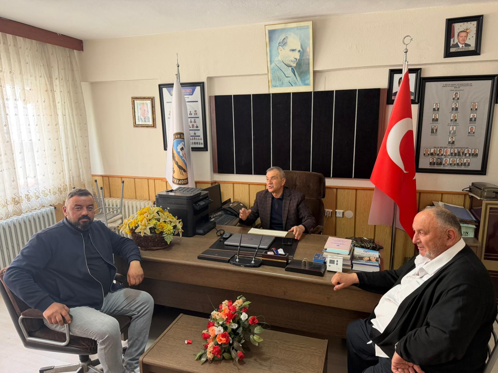 YENİÇAĞA - Bölgedeki esnaf temsilcileri arasındaki dayanışmayı güçlendirmek amacıyla gerçekleştirilen ziyaretlerin son durağı Yeniçağa oldu. Dörtdivan Esnaf Sanatkarlar ve Şoförler Odası Başkanı Mehmet Aslantaş, Yeniçağa Esnaf ve Sanatkarlar Kredi Kefalet Kooperatifi Başkanı Halit Ölmez ve Başkan Yardımcısı Mustafa Say’ı ziyaret etti.